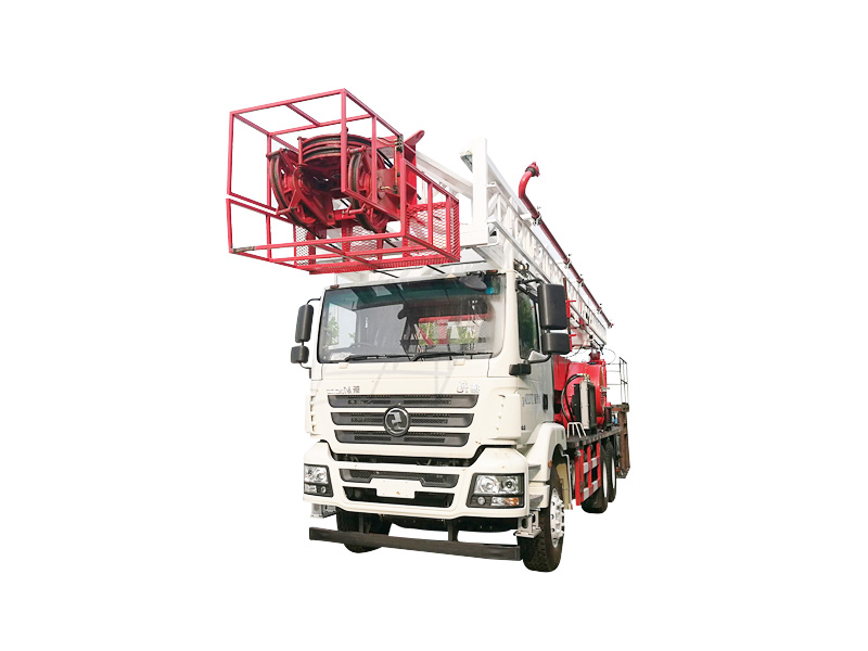 1. 小修修井機采用重載二類底盤,具有良好的機動性、越野性。井架、絞車、傳動箱、司鉆箱、液壓絞車等輔助設備安裝在副車架上,整機結構緊湊,重量輕。
